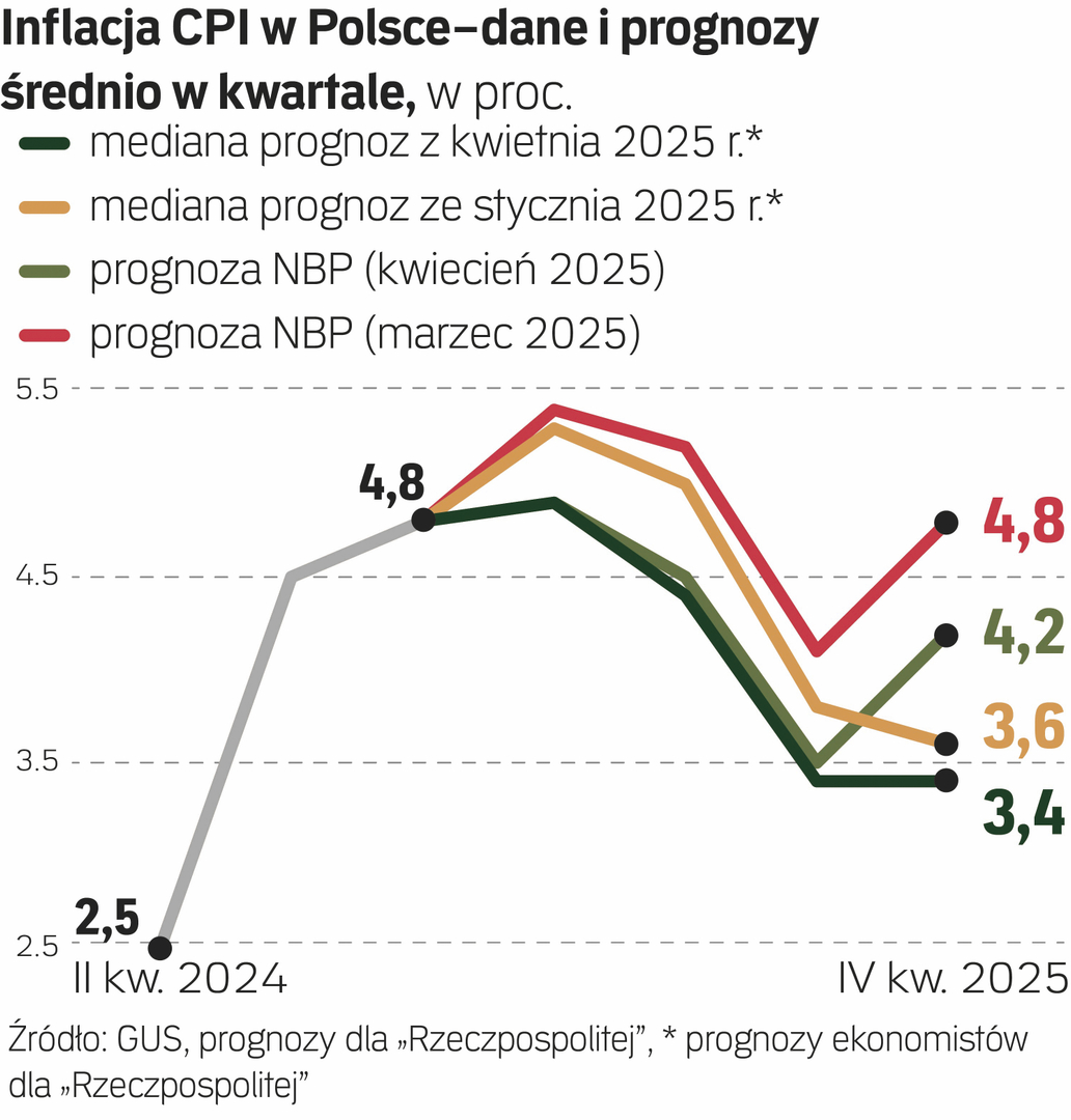 Na zmianę nastawienia RPP wpłynął cały zestaw ostatnich danych z gospodarki, przede wszystkim wyraźnie niższa od prognoz inflacja i tempo wzrostu płac. Glapiński dał do zrozumienia, że Radzie wystarczą nawet jeszcze jedne dobre z jej punktu widzenia dane w kwietniu, aby już na majowym posiedzeniu (6–7 maja) rozważyć obniżkę stóp procentowych. – RPP jest nastawiona, żeby obniżać stopy, ale następne dane muszą dać potwierdzenie, że trendy trwają – wyjaśniał Glapiński.
