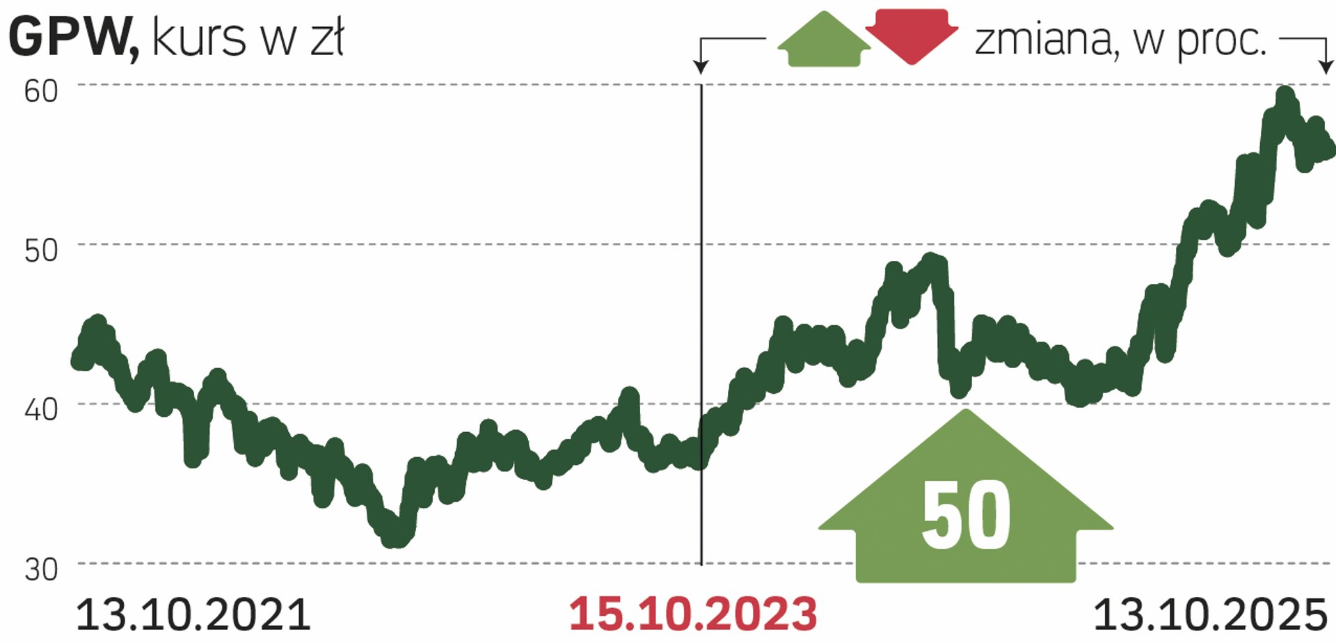 Kapitalizacja notowanych na GPW spółek, nad którymi kontrolę sprawuje Skarb Państwa, wzrosła od wyborów z 15 października 2023 r. z 218 mld zł do 340,8 mld zł, czyli o ponad 56 proc. Indeks WIG20 zyskał w tym czasie 45,6 proc.