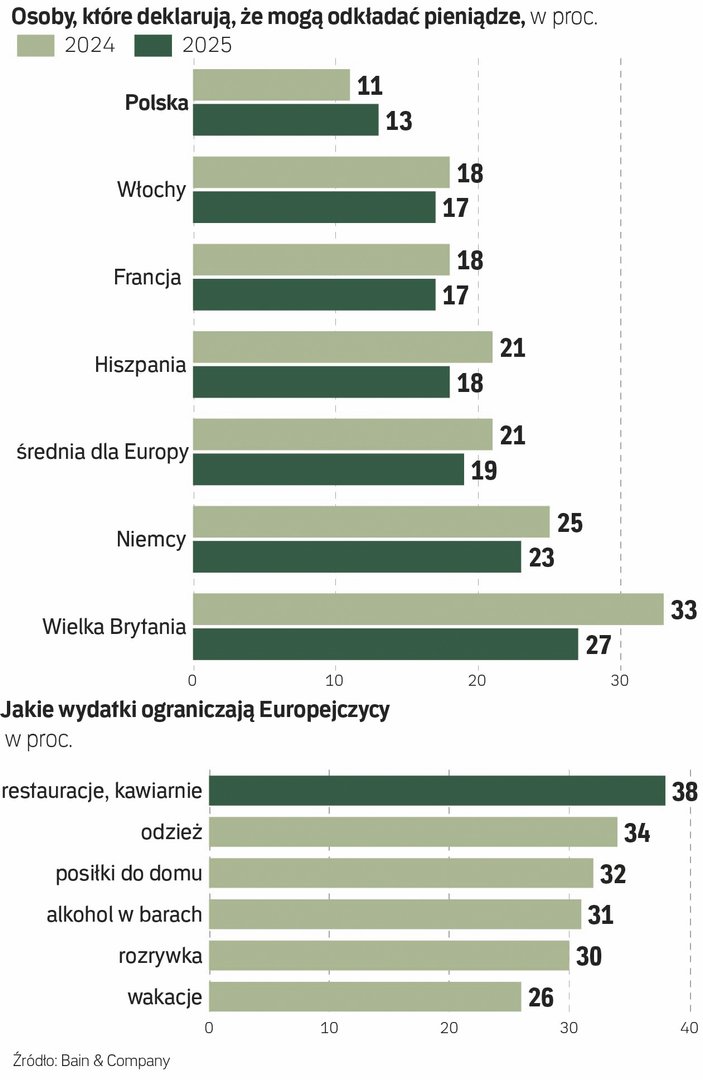 – W porównaniu z innymi krajami w Polsce odsetek osób posiadających komfortową poduszkę finansową jest mniejszy – mówi Marta Szostak, młodsza partnerka Bain & Company. – Rośnie również udział konsumentów, którzy – oprócz zabezpieczenia potrzeb pierwszego rzędu – są w stanie odkładać środki i dokonywać zakupów spoza kategorii niezbędnych – dodaje.
