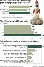Polska to pustynia spin-offów. A to wielkie wyzwanie, bo jak wskazuje wspomniany „European Spinouts Report 2025”, uczelniane spółki sektora deeptech i nauk przyrodniczych zatrudniają na Starym Kontynencie ponad 167 tys. osób, a ich łączna wycena sięga już niemal 400 mld euro. Analitycy zmapowali w Europie aż ponad 7,3 tys. tego typu spółek. Około 80 z nich to absolutne perełki, z przychodami przekraczającymi 100 mld dol., warte co najmniej 1 mld dol.