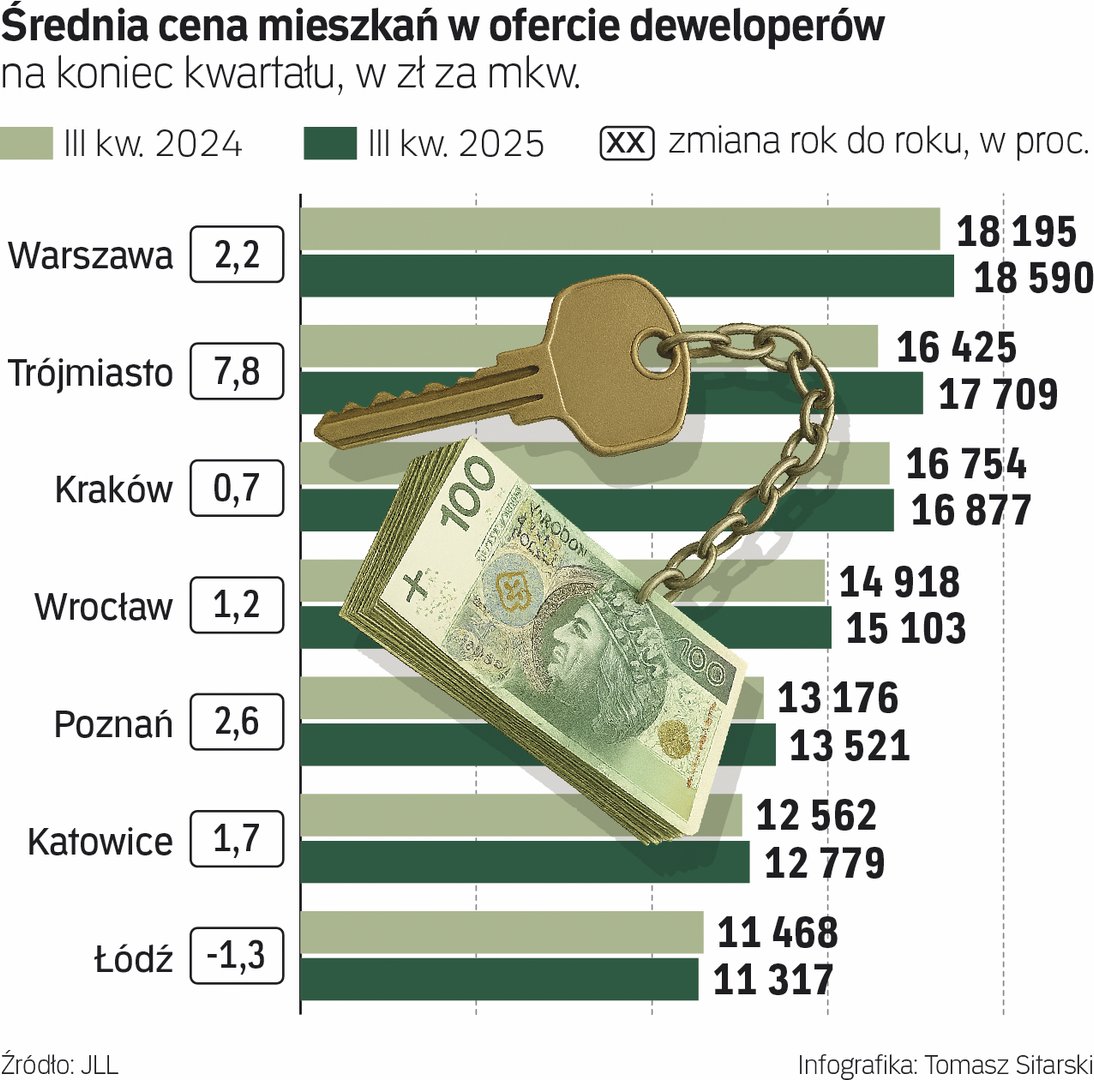 Eksperci JLL szacują, że w całym 2025 r. sprzedaż nowych mieszkań na sześciu największych rynkach powinna być lepsza o 10 proc. niż w 2024 r., kiedy to sprzedano ich ok. 39 tys. W kolejnych 12 miesiącach analitycy JLL spodziewają się kilkunastoprocentowego wzrostu sprzedaży. Zakupom sprzyja bardzo duża oferta lokali.