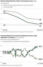 W styczniu (gdy inflacja sięgała 5 proc.), średnie prognozy inflacji dla „Rzeczpospolitej” zakładały, że ten rok będziemy kończyć ze wskaźnikiem inflacji powyżej 3,5 proc., a więc górnego poziomu tolerowanych odchyleń wokół celu NBP (2,5 proc. +/- 1 pkt proc.). Nawet najwięksi optymiści nie przewidywali, że wskaźnik zejdzie poniżej 3 proc.