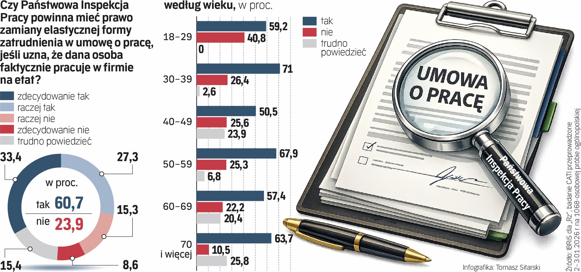 Większość badanych popiera nadanie inspektorom PIP uprawnień do przekształcania elastycznej formy zatrudnienia w stosunek pracy.