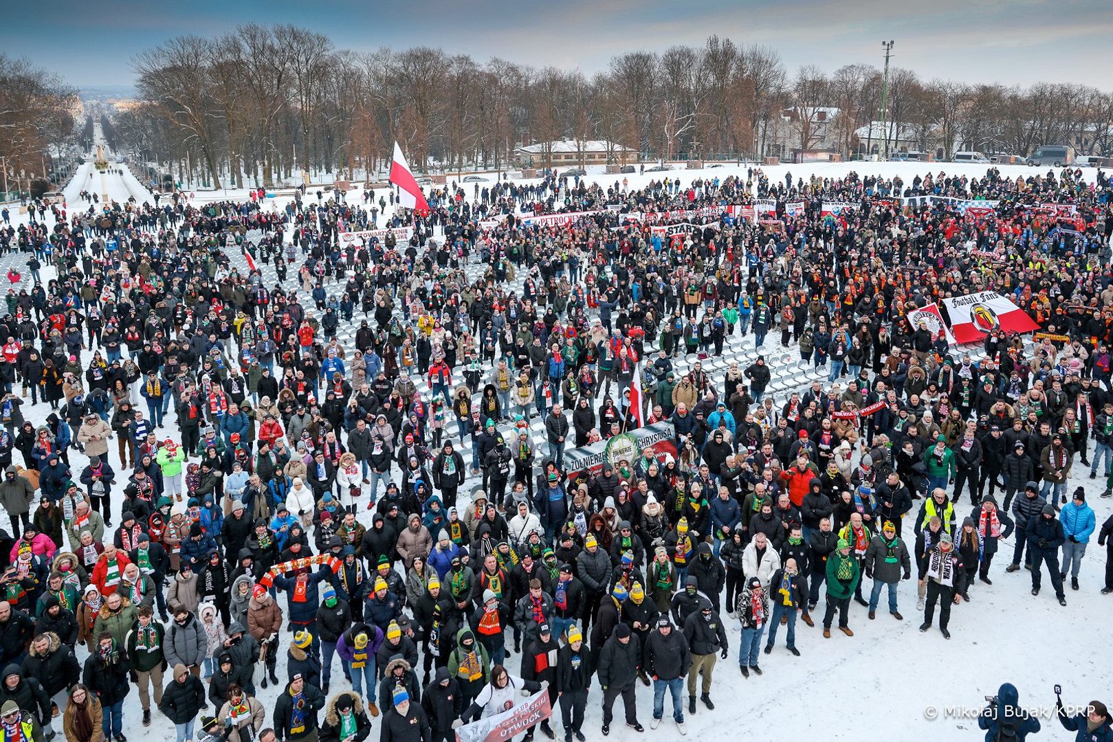 Ogólnopolska Patriotyczna Pielgrzymka Kibiców na Jasną Górę, zorganizowana w tym roku pod hasłem „Ciebie Boga wysławiamy”, odbyła się w sobotę 10 stycznia i wywołała poruszenie. Powodem były doniesienia Wirtualnej Polski, że podczas pielgrzymki Nawrocki serdecznie przywitał się z Tomaszem P., ps. Dragon, wielokrotnie karanym przywódcą gangu kiboli Jagiellonii Białystok. „Obecnie »Dragon« czeka na wyrok sądu drugiej instancji, po tym, jak w 2024 r. został nieprawomocnie skazany na sześć lat więzienia za propagowanie nazizmu, kierowanie gangiem i pobicia” – napisała Wirtualna Polska. „Ma wyrok...