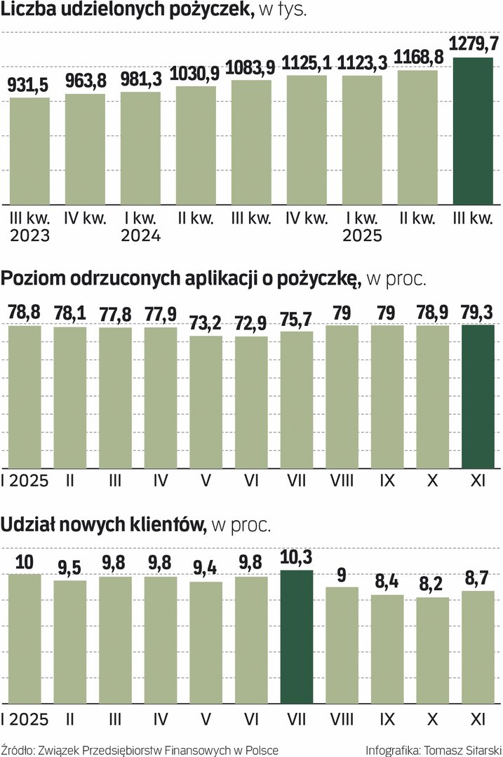 Zatrudnienie w sektorze firm pożyczkowych spadło o ok. 30 proc., podobnie jak liczba klientów. Poziom odmownych decyzji na wnioski o udzielenie pożyczki wzrósł z ok. 50 proc. do blisko 80 proc., a udział nowych klientów spadł poniżej 9 proc. Ze względu na spadek rentowności firmy pożyczkowe obsługują jedynie klientów o profilu zbliżonym do klienta...