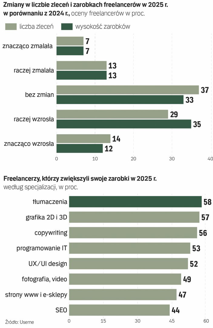 Tworzenie stron i sklepów internetowych, usługi fotografii, wideo i animacji oraz grafika 2D i 3D – to trzy specjalizacje najbardziej popularne wśród polskich freelancerów. Zajmuje się nimi aż trzech na czterech wolnych strzelców, którzy wzięli udział w badaniu platformy Useme specjalizującej się w rozliczeniach tych niezależnych specjalistów. „Rzeczpospolita” jako pierwsza opisuje raport Useme podsumowujący wyniki internetowego sondażu, który pod koniec 2025 r. objął 1260 freelancerów.