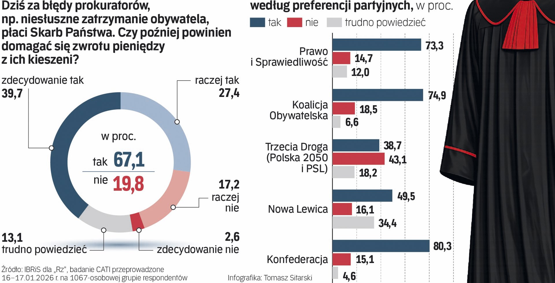 Dlatego też za błędy płaci Skarb Państwa. W 2024 r. rekompensaty wypłacone za niesłuszne tymczasowe aresztowania i zatrzymania wyniosły w Polsce niespełna 8,7 mln zł. Aż dwie trzecie ankietowanych uważa, że państwo powinno się domagać od prokuratorów zwrotu tych pieniędzy.—mm