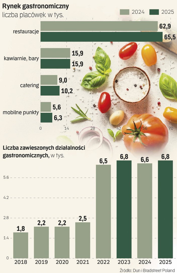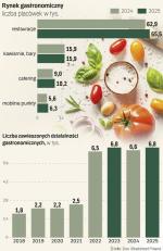 Polski rynek gastronomiczny w 2025 roku w porównaniu do 2024 roku wzrósł o blisko 5 proc. do już niemal 98 tys. punktów i firm – wynika z danych wywiadowni Dun & Bradstreet, które „Rzeczpospolita” poznała jako pierwsza. Za wzrost na rynku gastronomicznym odpowiadają dwie kategorie: firm cateringowych przybyło 13 proc., za co odpowiadają przede wszystkim podmioty związane z dietą pudełkową i cateringiem dietetycznym. Drugim motorem wzrostu sektora są coraz mocniej rosnące w siłę food trucki, których liczba zwiększyła się o 12,8 proc. Sektor rozwija się, choć nie omijają go problemy, jak rosnące zadłużenie.