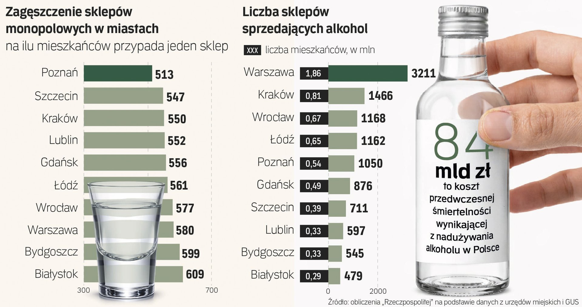 Pod lupę wzięliśmy dziesięć największych pod względem liczby mieszkańców ośrodków w Polsce: Warszawę, Kraków, Wrocław, Łódź, Poznań, Gdańsk, Szczecin, Lublin, Bydgoszcz i Białystok. Zapytaliśmy o aktualną liczbę sklepów monopolowych, obserwowane trendy i plany. W dziesięciu największych miastach łącznie działa ponad 11 tys. sklepów sprzedających alkohol. To o kilka procent mniej niż w 2024 i 2023 r. Wbrew obiegowej opinii w tej grupie nie dominują sklepy stricte monopolowe, lecz spożywcze z koncesją na sprzedaż alkoholu. —Katarzyna Kucharczyk