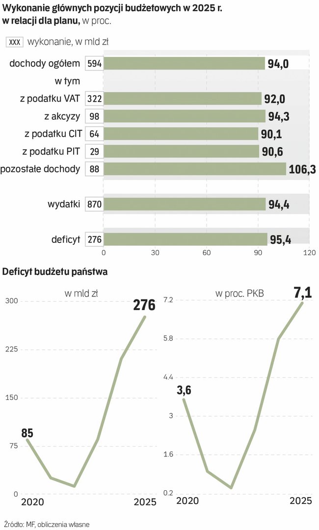 Dlaczego dochody budżetu w 2025 r. były niższe od planu?