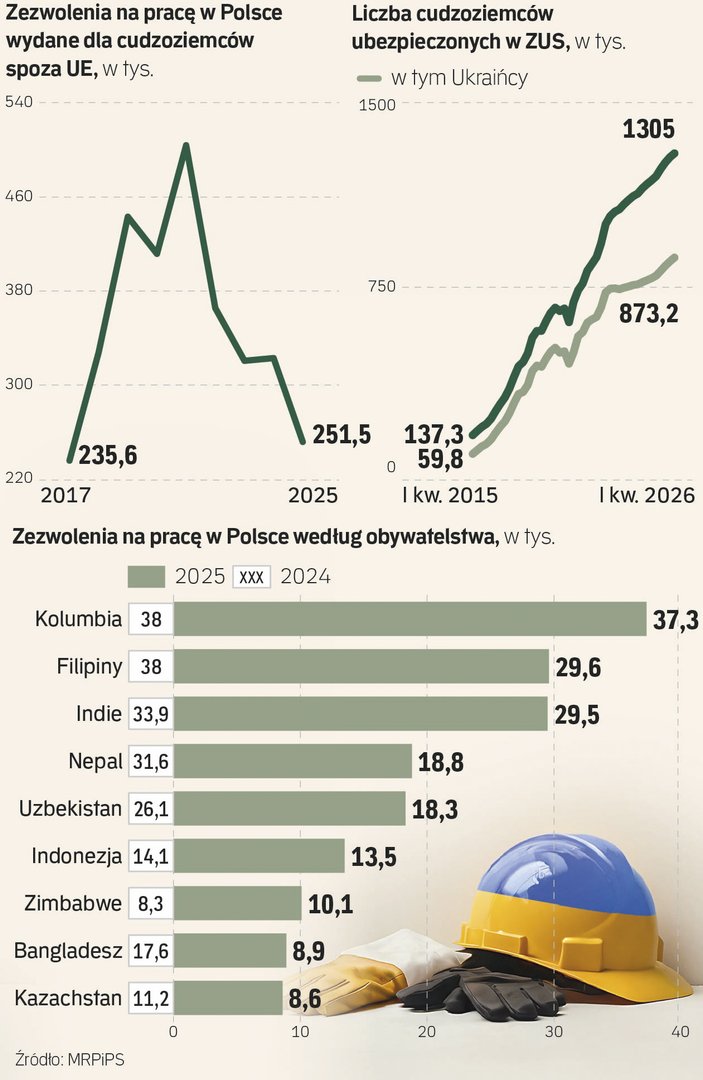 Z danych MRPiPS wynika, że Kolumbijczycy awansowali w zeszłym roku na pierwsze miejsce listy cudzoziemców, do których trafiło najwięcej zezwoleń na pracę w Polsce (37,3 tys.), chociaż i tak dostali ich o 2 proc. mniej niż rok wcześniej. Jednak znacznie większe, dwucyfrowe często spadki liczby dokumentów legalizujących pracę widać w przypadku obywateli pozostałych państw, do których w ostatnich latach trafiało...