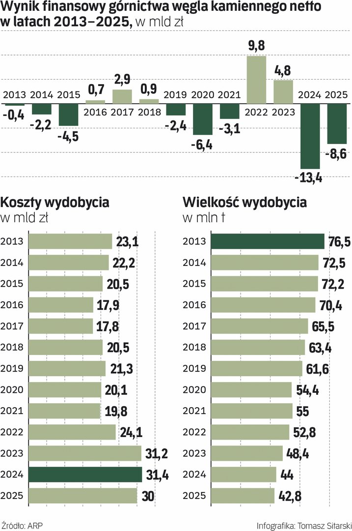 Wcześniejsze odejścia pracowników mają pomóc spółkom górniczym w ograniczeniu kosztów w obliczu spadającego popytu i cen węgla. To jednak nie wystarczy, bo efekty odejść będą odczuwalne najwcześniej pod koniec roku lub dopiero w 2027 r. Polska Grupa Górnicza (PGG) bez dodatkowego wsparcia może utracić płynność w czerwcu, a giełdowa Jastrzębska Spółka Węglowa (JSW) w maju.