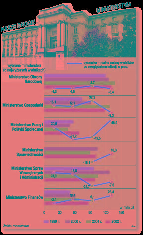 Administracja publiczna zajmuje drugie miejsce, po górnictwie, pod względem tempa wzrostu wydatków zaplanowanych w projekcie budżetu na 2004 r. Na utrzymanie administracji publicznej i urzędów naczelnych organów władzy państwowej przeznaczono tam 9,4 mld zł, 16 proc. więcej niż w tym roku.