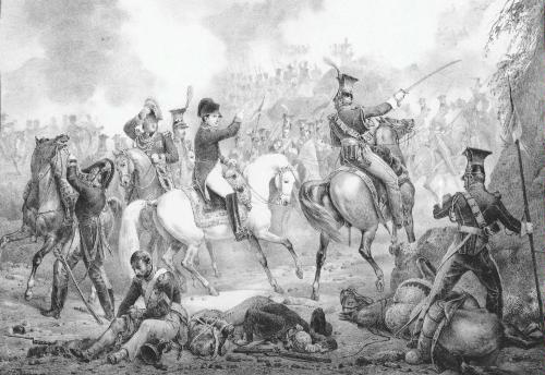 Wysłanych na rekonesans strzelców konnych (szaserów) gwardii pod dowództwem oficera ordynansowego cesarza mjr. Philippe'a...