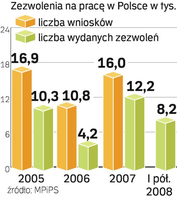 – Szykuje się mała rewolucja w polityce migracyjnej – przyznaje Marcin Kulinicz, naczelnik w Departamencie Migracji resortu pracy. Już od nowego roku zamiast zniechęcania do zarobkowych przyjazdów, urzędnicy mają sprzyjać zatrudnianiu cudzoziemskich fachowców. W ich przypadku uproszczone zostaną procedury uzyskiwania zezwolenia na pracę, a także – w przypadku robotników sezonowych – wydłużony okres podejmowania...